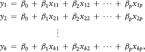 where the xs and ys are measured values and the p + 1βs are the unknowns.