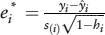 is the mean square estimate of the residual variance σ2 with the ith observation removed, have a Student's t distribution with n–p −1 degrees of freedom (df) under the assumption of normally distributed errors. An equivalent expression might be constructed in terms of yi(i), which is the fitted value for observation i when the latter is not included in estimating regression parameters: