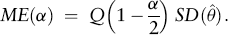 is symmetric about zero. Let Q(0.975) denote the 97.5th percentile of this distribution. (Note that the 2.5th percentile of the distribution would then be given by–Q(0.975).) A symmetric 95% confidence interval for θ is defined as θ ± Q(0.975) SDθ. The half-width or radius of such an interval, ME = Q(0.975)SDθ, defines the conventional margin of error, which is implicitly based on a 95% confidence level.