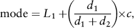 where L1 = lower value of the modal category; d1 = difference between the number in the modal class and the class below; d2 = difference between the number in the modal class and the class above; and c = length of the interval within the modal class. (This interval length should be common for all intervals.)