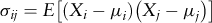 Note that the covariance matrix σ is symmetric and positive definite. The (i, j)th element is given by