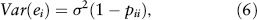 The direct implication from this residual property is that although the error terms are independent, the residuals are not. In addition, residuals resemble only estimates of the true and unobservable error terms and as such do not have the same variance σ2, as implied in Equation 4. The variance of the ith residual is defined as