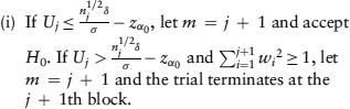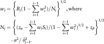 is the naive estimator of θ using the cumulated data up to the jth block, and Nj is solved from an inequality aimed at achieving conditional power of 1–β. The final test statistic is constructed as a weighted average of the sufficient statistic of each