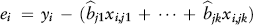 , yielding a new set of residuals ei, which are used in the criterion to determine whether the regressor labeled