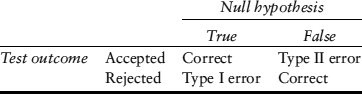 Table 1 Schematic Representation of Possible Combinations between Hypothesis and Test Outcome
