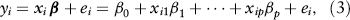 Let yi be the response and xi = (1, xi1, …, xip)be the set of predictors,–1, 2, …, n. The multiple regression model can be expressed as