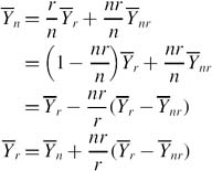 This expression makes it clear that the estimated mean for the respondents is equal to the estimated mean for all units in the sample plus a factor that expresses the biasing effect of the nonresponse error. When there is no nonresponse, then (nr = o→ r = n):
