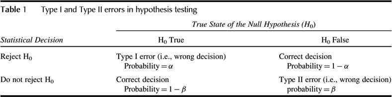 Table 1 Type I and Type II errors in hypothesis testing